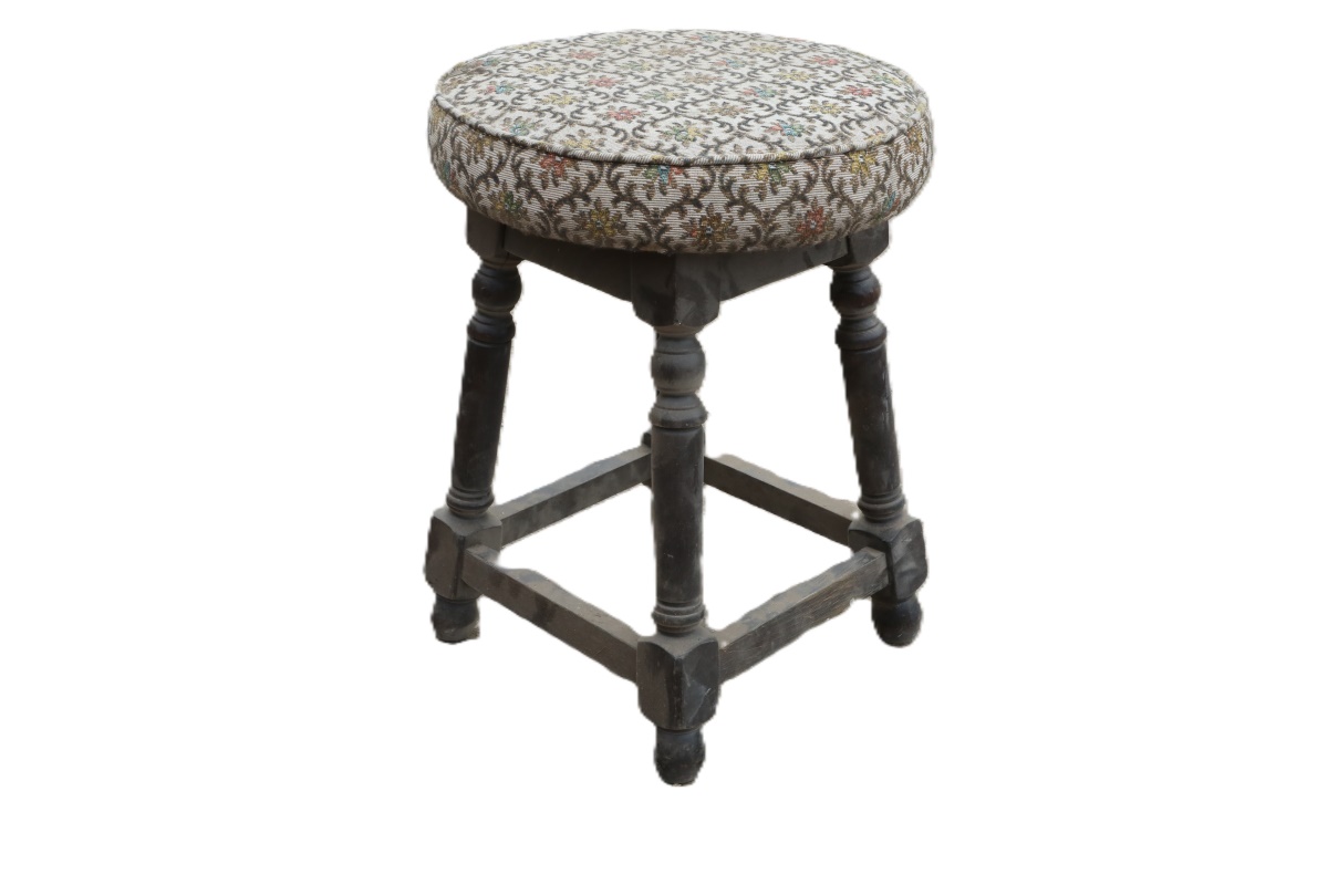 Reclaimed Upholstered Bank Stool- NatWest 47cmH