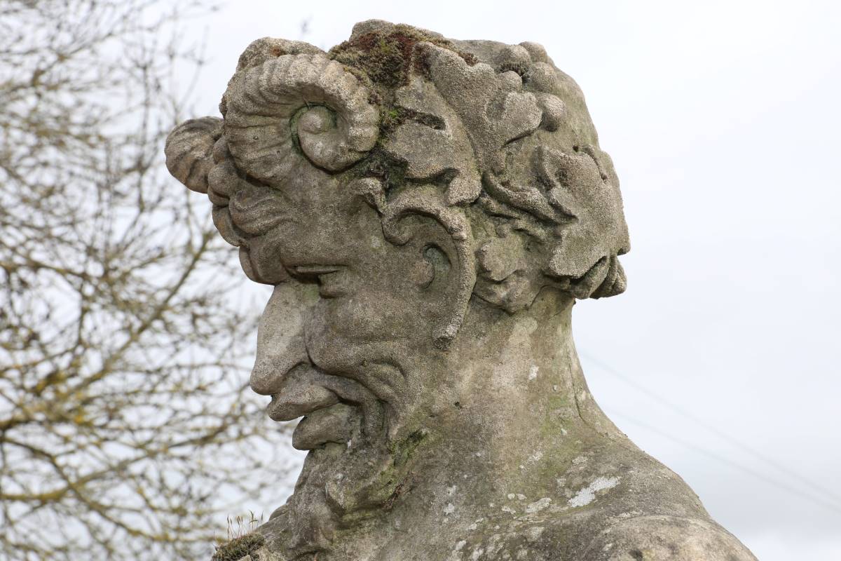 Weathered Statue of Pan and Pipes