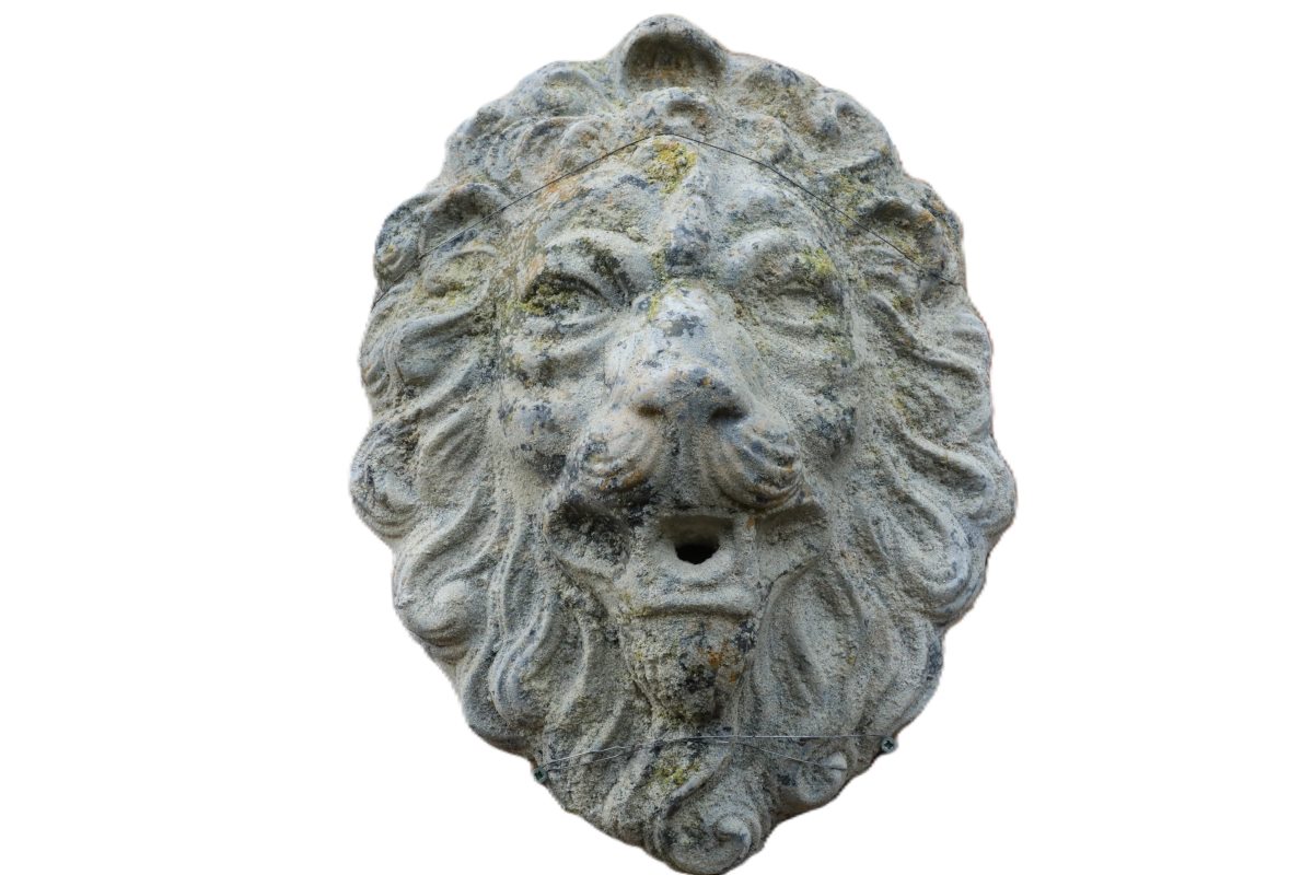 Decorated Stone Urn with Lion Head and Draped Fabric