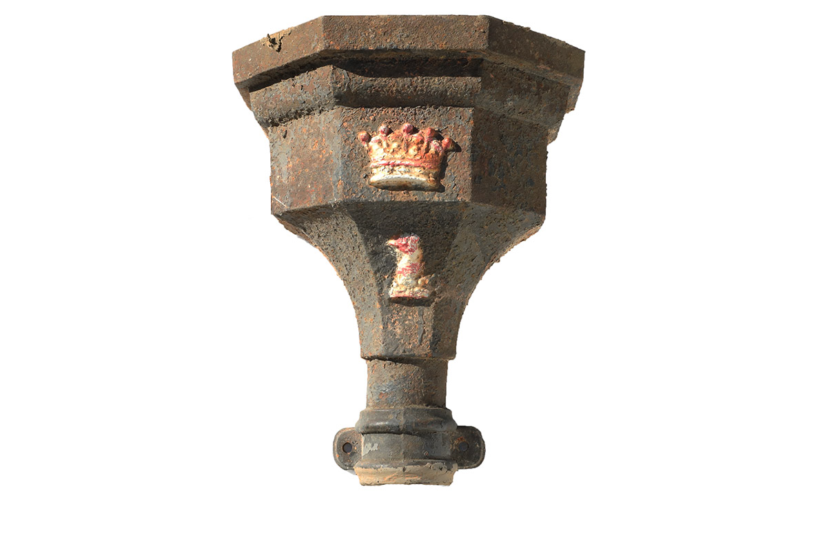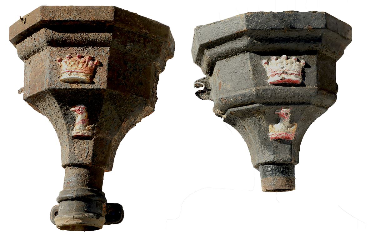 Now more than 100 years old, these antique cast iron rainwater hoppers show clear signs of age. Flaking paint, light surface corrosion, and minor edge wear reflect decades of service. However, this weathered patina adds depth and authenticity. New castings simply cannot replicate such character.