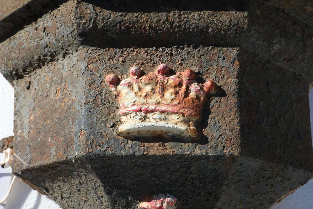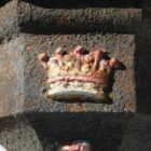 This particular pair of antique cast iron rainwater hoppers displays an impressive crest. Each hopper features an eagle and crown motif, crowned again by a larger crown above. The design suggests a family or corporate emblem, though its exact origin remains unknown. Although not perfectly identical, we offer them together due to their shared detailing. As a result, they create a cohesive visual statement on any period façade.