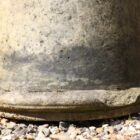 Although it remains capable of performing its original function, it now suits decorative outdoor use more naturally. Signs of age include extensive discolouration, softened edges, and scattered minor chips. The lower rim shows heavier chipping, yet this does not affect overall stability. In addition, small chips appear along the upper rim, reinforcing its reclaimed character.