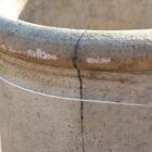 A classic Buff Rolled Rim Chimney Pot offers both history and function. This reclaimed chimney pot stands 25 inches tall and measure 12 inches in diameter. Made with buff-coloured earthenware clay, it’s endured decades of exposure, resulting in a beautifully weathered appearance. As a result, the surface displays areas of lichen, staining, and noticeable cracks, adding unique character and charm. The visible cracks prevent this from use as part of a chimney stack. However, it is robust enough for use as a garden planter.