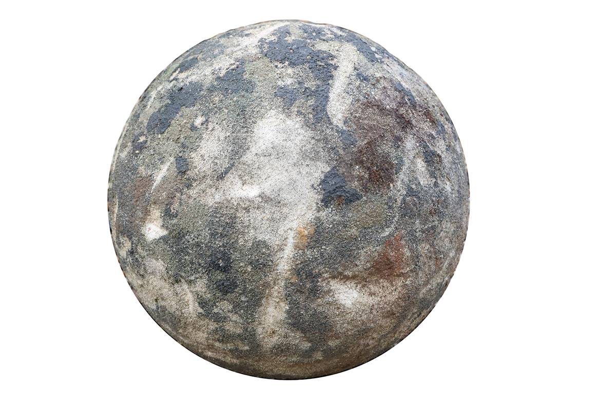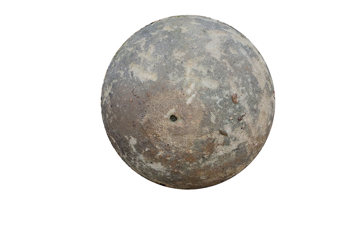 This reclaimed composite stone ball finial once sat proudly atop a pier cap within a formal boundary. A small fixing hole remains underneath, indicating its original architectural position and method of installation. Unfortunately, the pier cap has been lost, leaving only the spherical finial itself. However, decorative stone balls remain popular, giving this piece a clear new purpose.