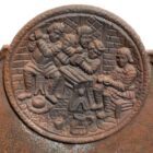 Cast iron has a rich industrial history dating back to the 18th century. During the Industrial Revolution, manufacturers widely adopted it for its strength and castability. Because molten iron flows easily into moulds, it captures intricate details with impressive precision. Therefore, decorative elements like this scene remain crisp and expressive even centuries later.