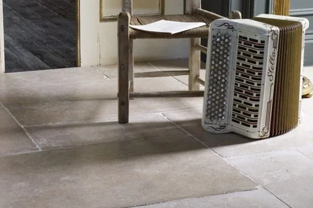 Dijon Limestone Egyptian Paving: Tumbled, Etched & Sealed
