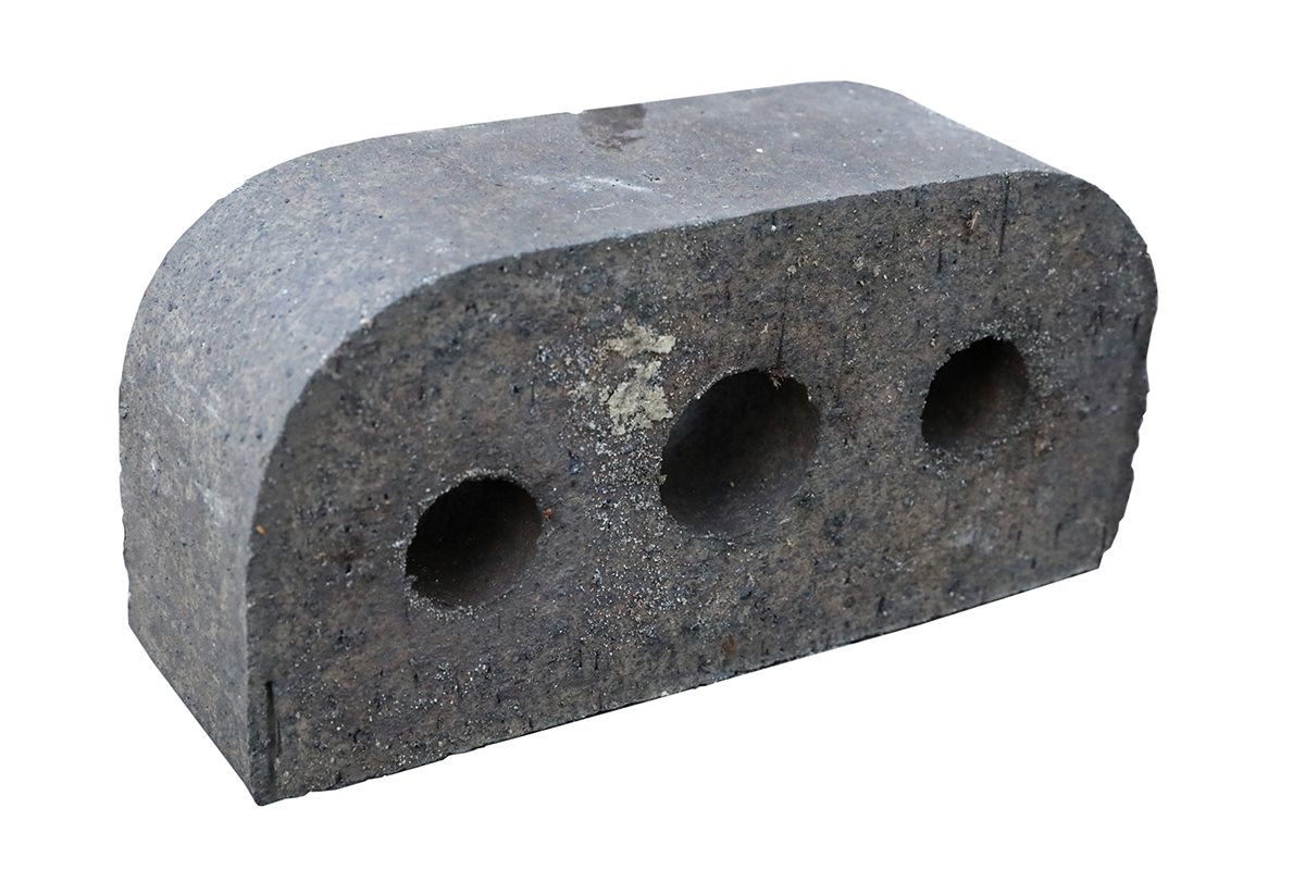 These double bullnose blue perforated bricks include three large holes through the body. Perforations reduce weight, improve handling and increase the bond with mortar because it fills the holes during laying. They also speed manufacture and reduce material use without compromising structural integrity. As a result, perforated bricks support efficient building while still offering reliable strength.