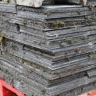 These reclaimed fibre cement roof slates offer practical performance with an already weathered appearance. Minor environmental discolouration appears across many surfaces and small patches of lichen sit lightly on some slates. Small chips mark corners or edges, however, most slates remain structurally sound and ready for reuse. These are lightweight, durable alternatives to natural roofing slates.