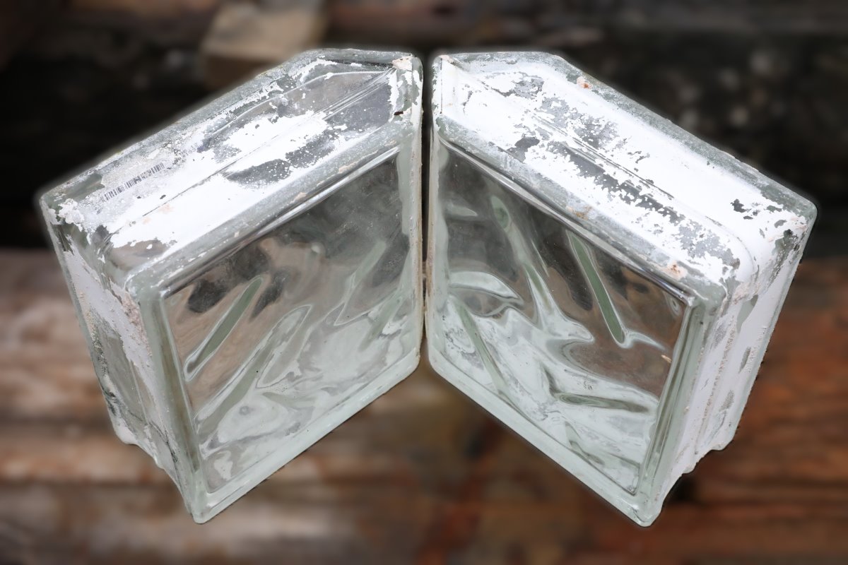 These reclaimed glass mitred corner bricks offer a refined solution for making corners in glass brick walls. As mitred units, they form a crisp, continuous corner rather than an awkward perpendicular junction, producing a far neater finish than standard glass blocks. Installing glass bricks requires methodical preparation using either traditional mortar with steel rods or modern silicone systems.