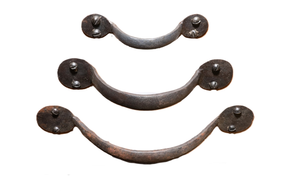 Although these hand forged handles are not reclaimed, they have spent many years in storage. This long storage period has resulted in a naturally aged surface, further enhanced by the beeswax finish. The soft sheen of the wax coating highlights subtle marks from forging, making each piece unique. Hand forged D handles therefore carry an appearance that sits comfortably alongside genuinely old ironwork.