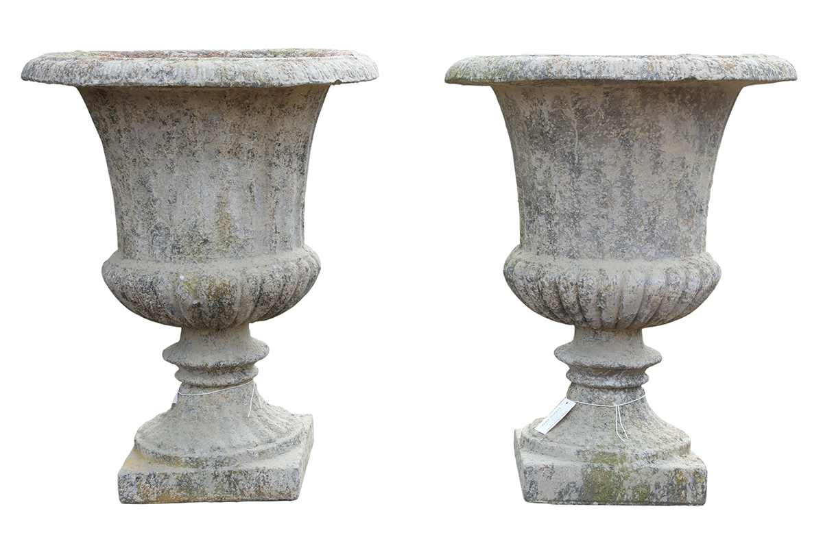 Each large fluted Medici vase receives a unique weathering layer, carefully applied at source in the South of France. This specialist finish encourages a natural patina to form over time. As it develops, the surface softens and deepens, blending beautifully into mature garden landscapes. In formal settings, the aged surface complements structured planting and classical symmetry. In wilder spaces, the same vase feels organic, especially when filled with tumbling greenery.