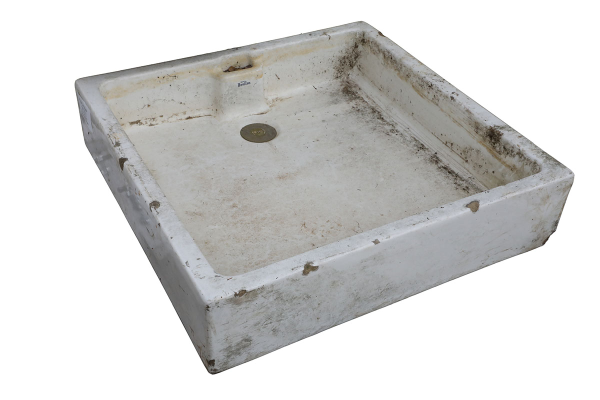 With some cleaning and light refurbishment, this large square Belfast sink is perfectly ready for installation in a home once again. It could serve as a striking kitchen sink, a practical utility basin, or even as a focal feature in a scullery. Alternatively, it works well in outdoor spaces, whether as a garden sink, a greenhouse workstation, or a boot wash. Its versatility and unusual size make it a highly distinctive option, both practical and decorative.