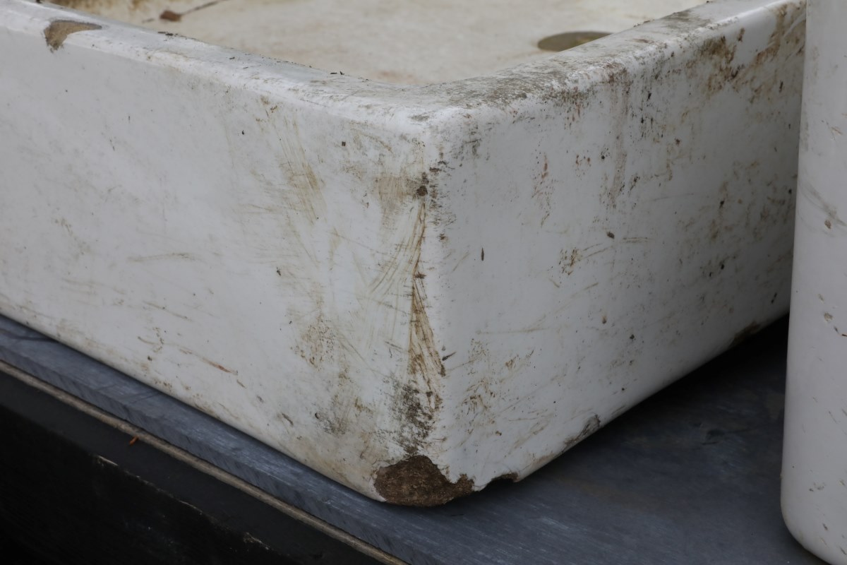 Royal Doulton is celebrated for producing strong ceramic ware, and this Belfast sink showcases that lasting quality. Despite surface wear, it remains sturdy and entirely usable, a testament to the brand’s craftsmanship. Using a reclaimed large square Belfast sink also supports sustainable living by reducing demand for new manufacturing. Reclaimed pieces bring both character and environmental benefit, helping to preserve historic materials for modern use.