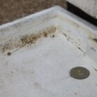 This particular large square Belfast sink is unusual in both shape and size, measuring 30″ square and just 7″ deep. Its design suggests use from both sides at once, perhaps in a bustling family kitchen where several tasks happened simultaneously. Being reclaimed, the sink shows its history through discolouration and small edge chips, which add rustic character to its appearance. These signs of use highlight its age and authenticity, giving it a unique presence in any setting.