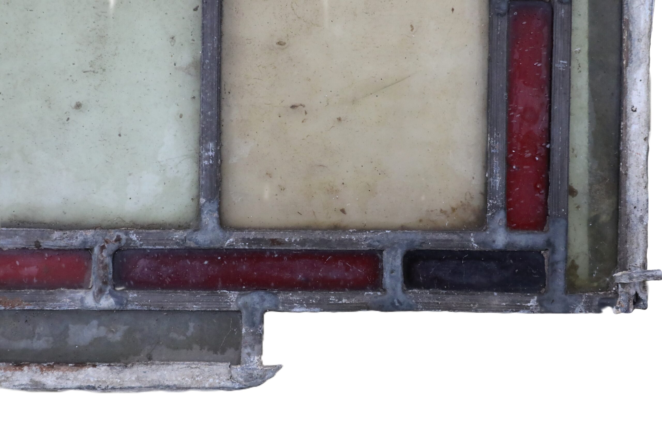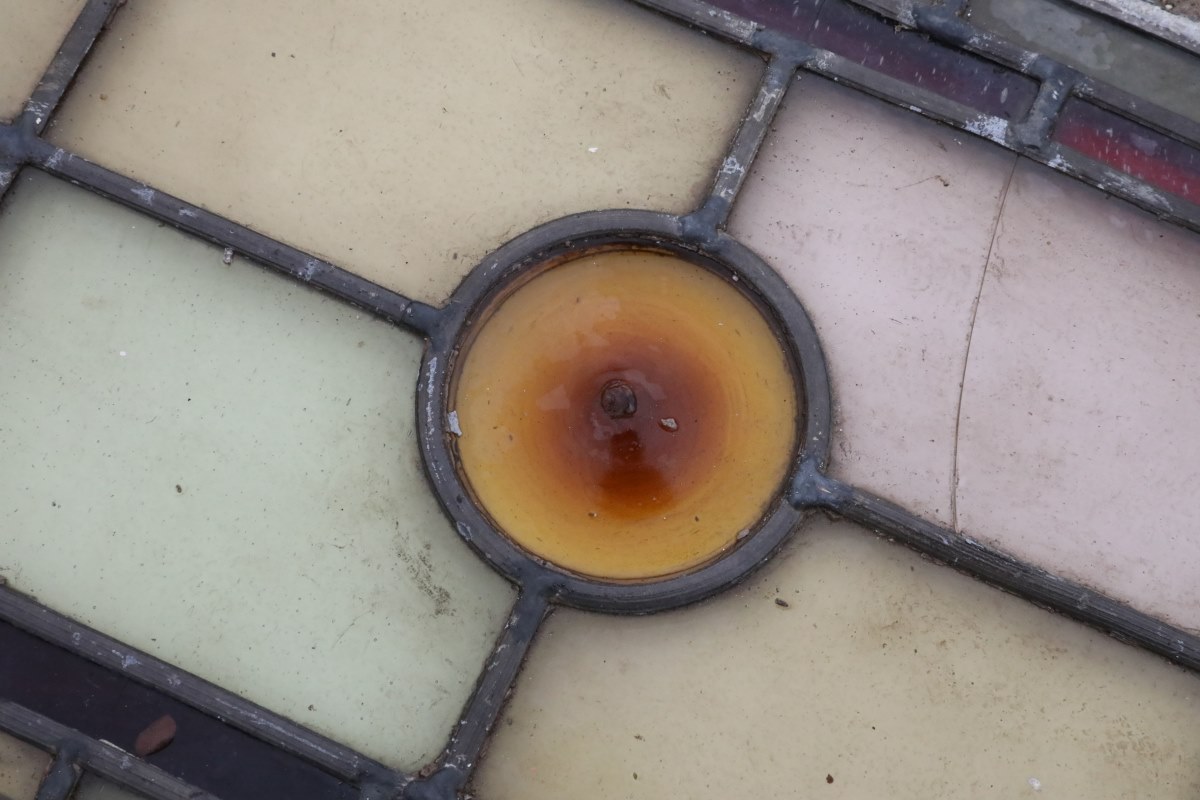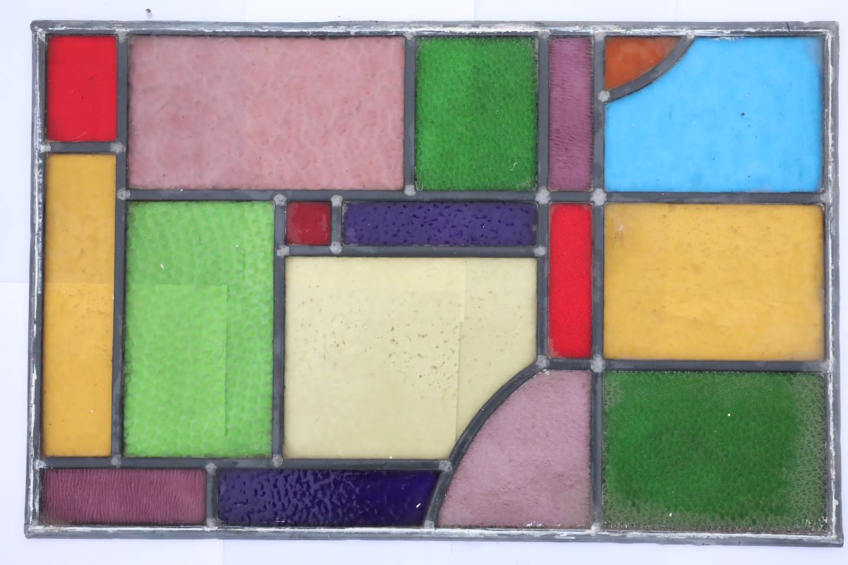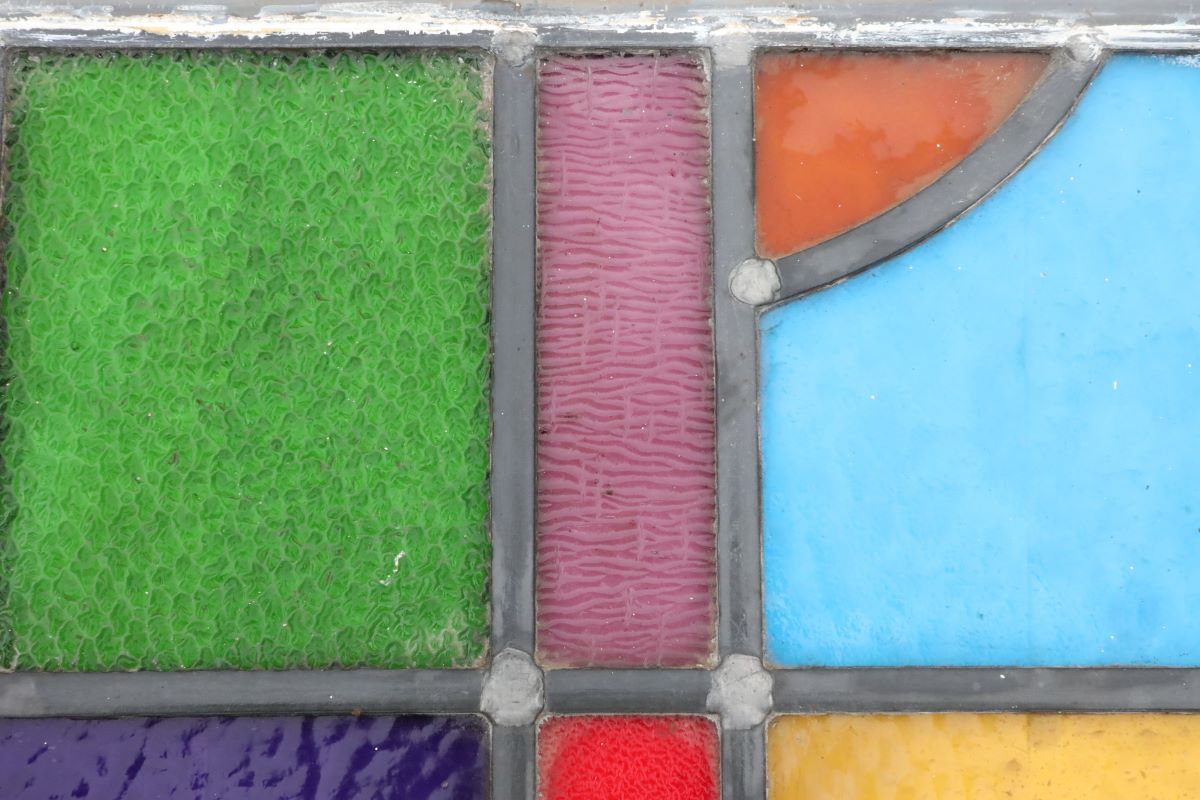 Coloured glass is created by adding metal oxides to molten silica. The mixture is then blown or rolled into sheets before being cut and leaded into intricate designs. Specific pigments create the familiar hues: copper oxide produces red tones, cobalt oxide gives deep blues, cadmium sulphide creates oranges, and iron oxide provides shades of green. These pigments fuse into the glass, ensuring colour that never fades or peels. When sunlight passes through, each reclaimed, vintage leaded stained glass window reveals stunning depth and brilliance.