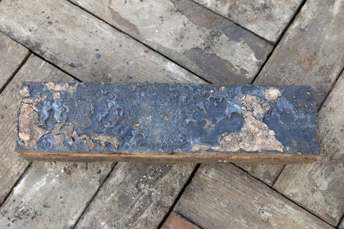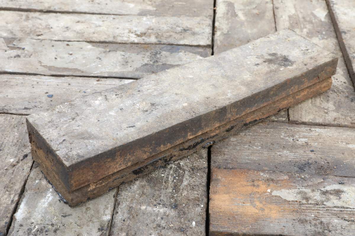 This pitch pine parquet flooring features extra thick blocks designed for longevity. Each block carries a bitumen backing to resist damp conditions. Historically, installers laid this format directly onto dirt floors in industrial settings. The additional depth reduced warping and movement within the wood. As a result, these reclaimed batches still display a notably level surface.