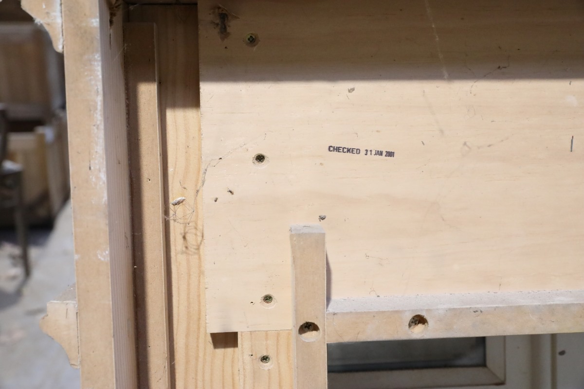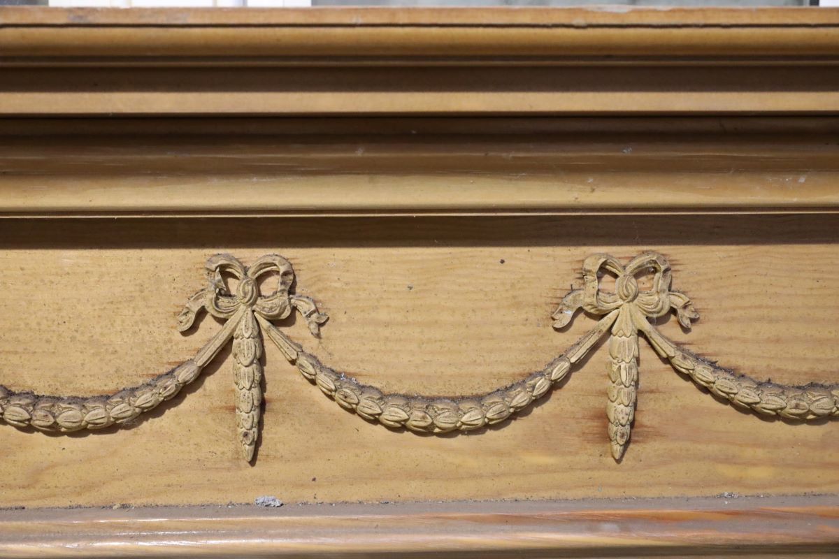 Being a reclaimed item, the frame carries marks that show its age. However, the piece has not been used with a working fire, so the surfaces show no soot or heat discolouration. The damage noted on the mantel occurred during storage rather than through use. Despite this, the reclaimed garlanded fire surround keeps its structural integrity and remains ready for installation.