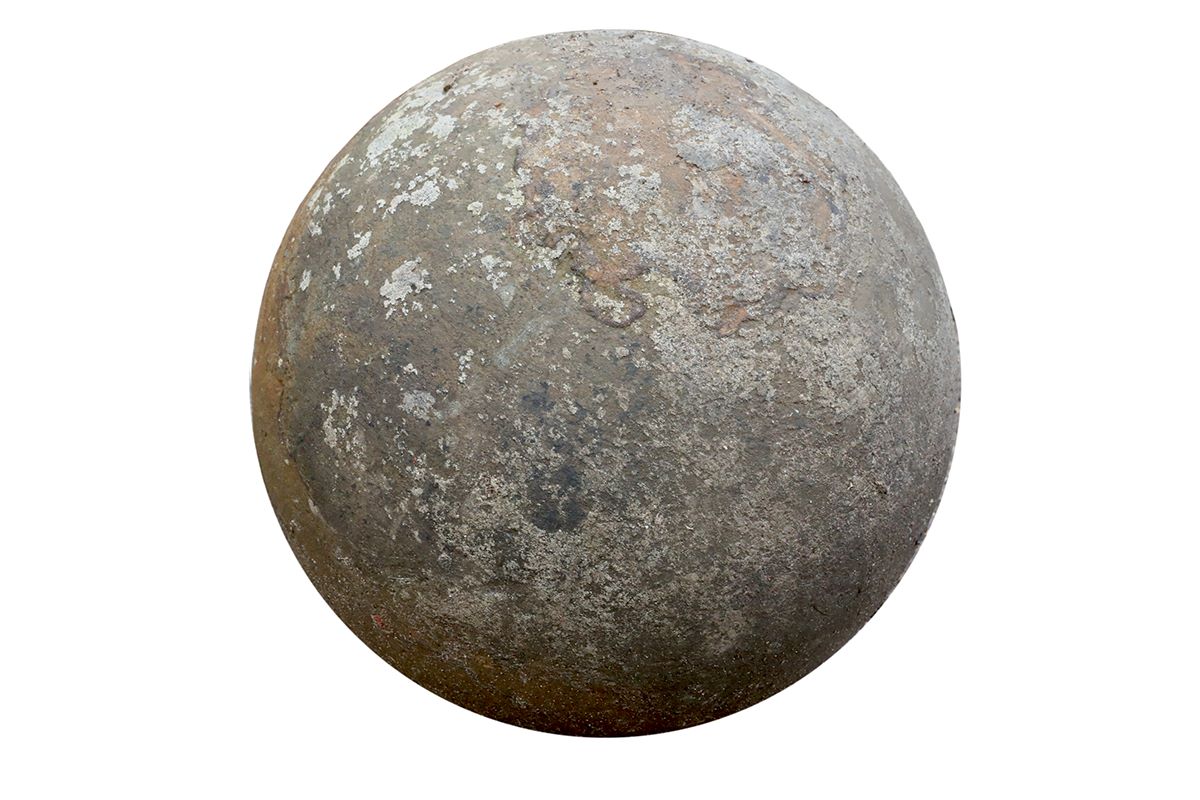 Because of its strength, Ironstone withstands weather exposure, moisture and ground contact extremely well. For this reason, makers often chose it for boundary details requiring longevity and stability. This reclaimed Ironstone ball finial measures approximately 12 inches in diameter and weighs around 30 kilograms.