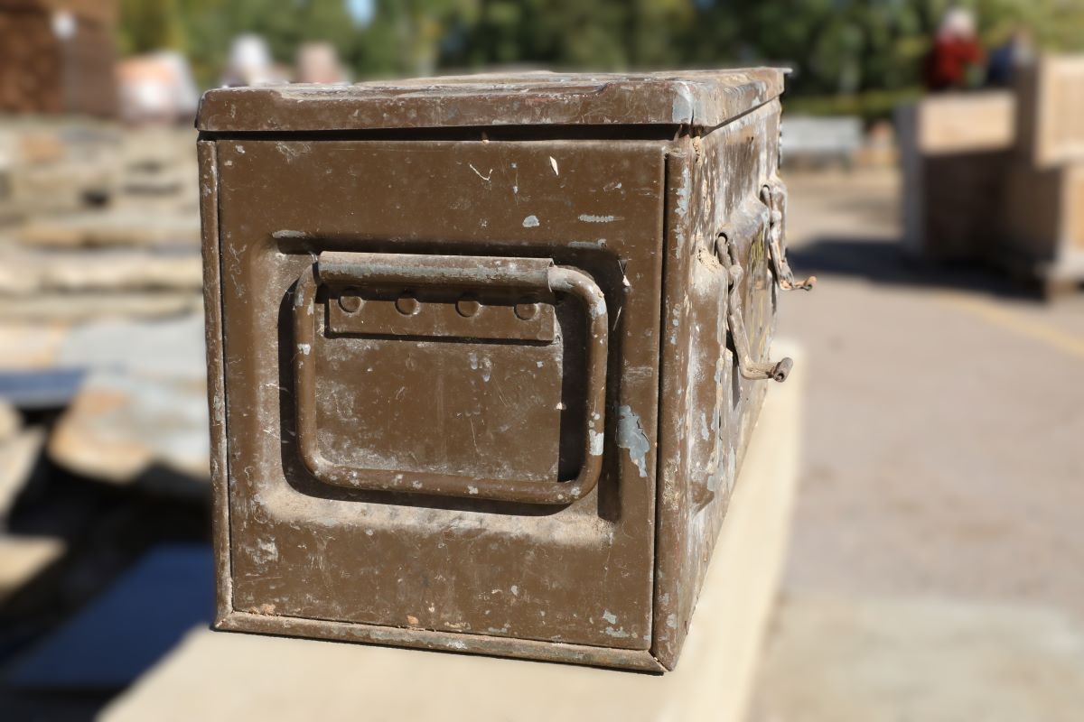 British Army ammo boxes have a long history dating back to the early 20th century. Designed to withstand harsh environments, they protected vital supplies from moisture and impact. In addition, made from steel or aluminium, they featured secure locking mechanisms and reinforced corners. After military use, many found new life in workshops, garages and homes due to their strength and portability. Moreover, their continued popularity lies in their robust design and adaptability for civilian use. This reclaimed military ammo box perfectly represents that enduring practicality.