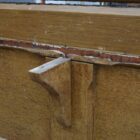 This particular pew features simple straight lines softened by subtle curves. At the back, the prayer book shelf is missing, though the slotted supports remain for easy replacement. Alternatively, removing the two central supports allows it to sit flush against a wall. It makes striking seating for a hallway, entrance or waiting area, adding heritage and presence to large spaces.