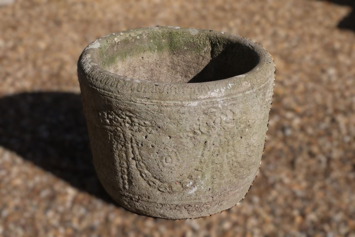 This reconstituted stone garland planter offers durability, heritage styling, and practical planting space for a wide range of gardens. It features a classical garland motif that remains clearly visible despite years of use. Its subtle size and weathered appearance make it suitable for planting flowers, herbs, or compact shrubs in both open and sheltered spaces, without overpowering its surroundings.