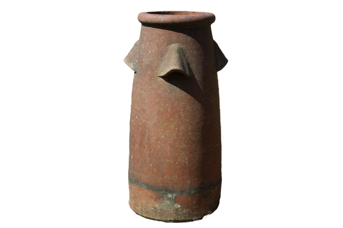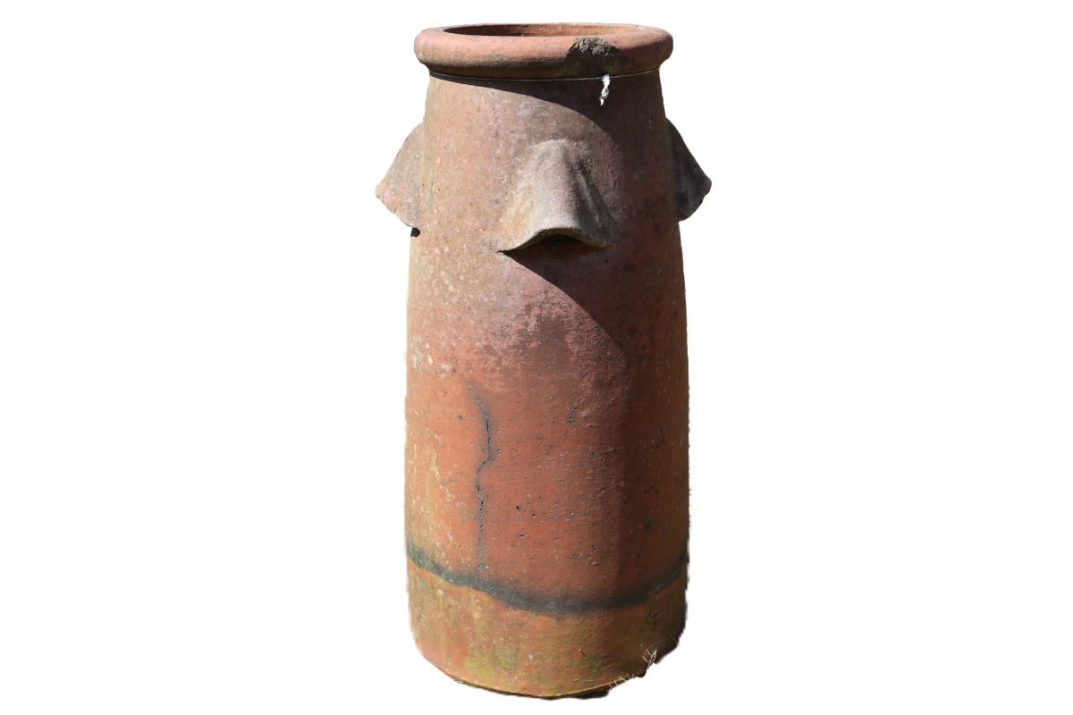 Terracotta chimney pots became widespread across Britain during the 18th and 19th centuries. They improved chimney draft while helping disperse smoke safely above rooflines. Over time, regional styles developed, reflecting local craftsmanship and architectural preferences. Today, surviving examples like this red vented chimney pot carry that rich heritage into modern settings.