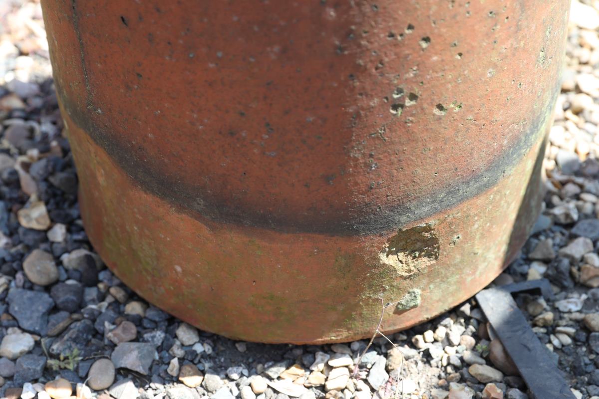 This reclaimed red clay (terracotta) vented chimney pot offers a distinctive and practical addition to any outdoor space. Standing 27 inches tall, it provides noticeable height without overwhelming its surroundings. With a diameter of approximately 14 inches, it suits patios, borders, and courtyard gardens alike. It has a roll top design, a popular finish compared to Bishop and Tulip top chimney pots.