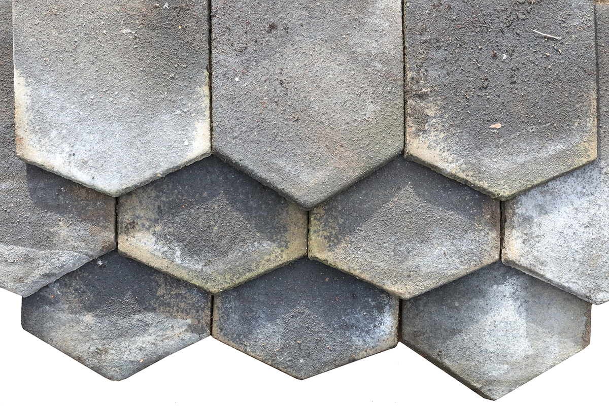 Reclaimed Redland concrete Arrowhead roof tiles offer durability, visual interest, and practical value for many roofing projects. Once installed, the overlapping pattern creates a striking hexagon design across the roof surface, the size of which changes dependent on the overlap and batten spacing. The aged patina softens the visual impact of new builds on surrounding landscapes.