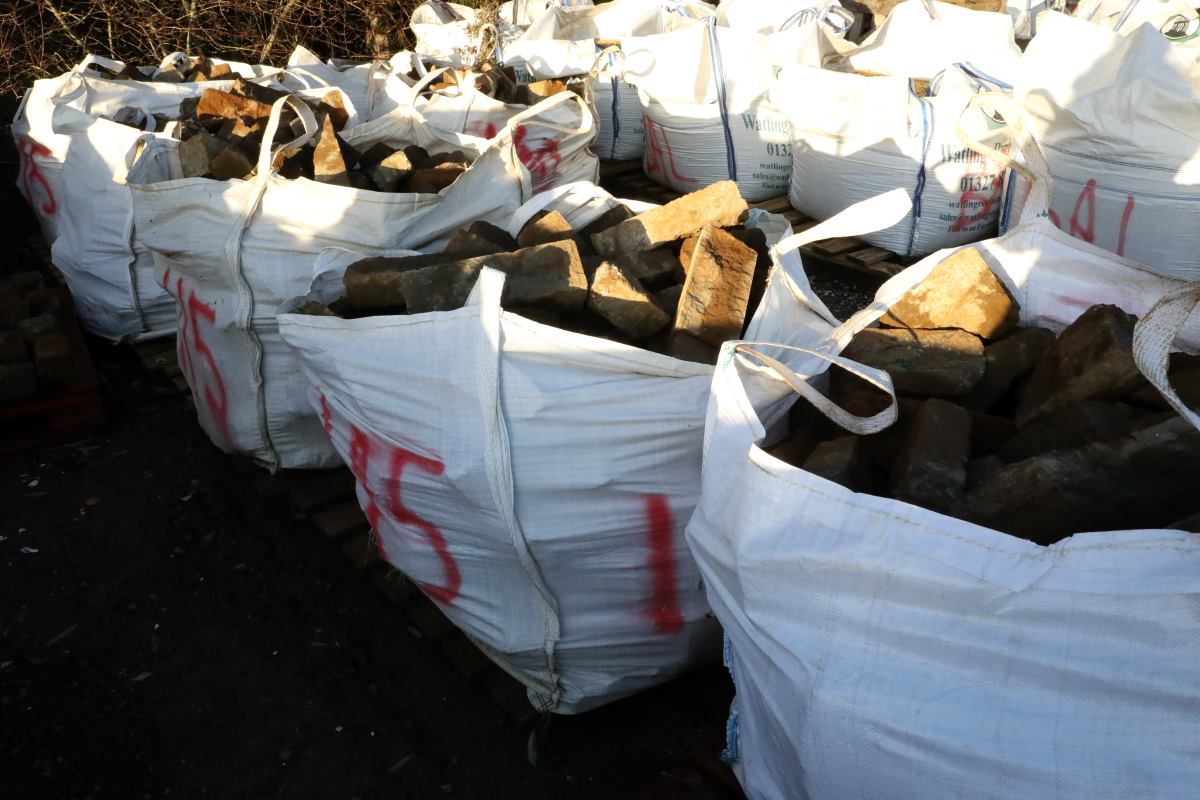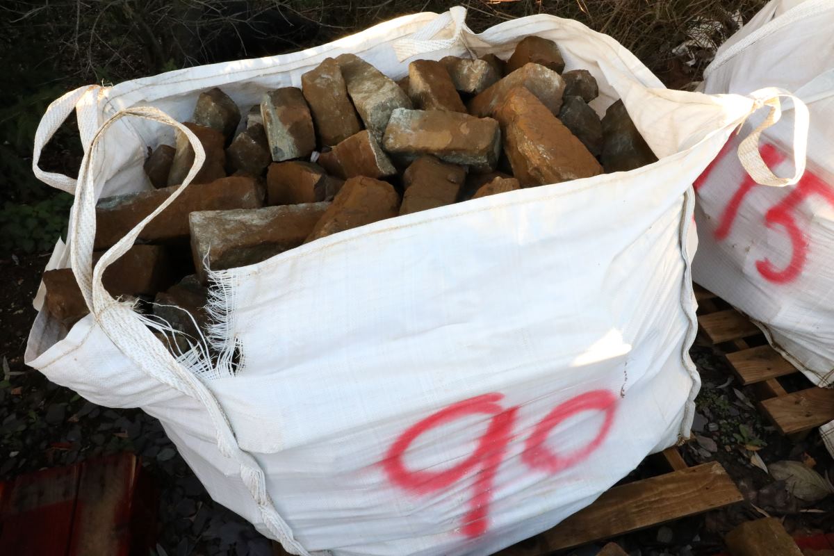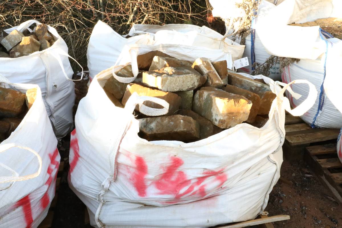 We have a large number of approx. 4 – 4.5 square metre bulk bags of sawn on bed ironstone walling stone seconds.