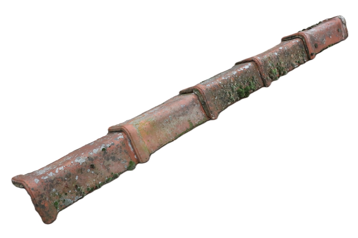 These reclaimed Tuileries Romain Boyer terracotta ridge tiles combine decoration with proven roofing performance. Produced in southern France, they reflect regional skill and demanding climate conditions. Terracotta ridge tiles have protected roof junctions for centuries across Europe. Builders adopted fired clay for ridges because it resisted rain, wind, and frost. As roofing evolved, ridge tiles became both functional and visually considered. Terracotta proved ideal because it sheds water, breathes naturally, and withstands temperature extremes. Furthermore, it ages gradually, avoiding sudden failure. These qualities explain why historic terracotta roofs often remain intact today. The Tuileries Romain Boyer ridge tiles clearly show these enduring material strengths.