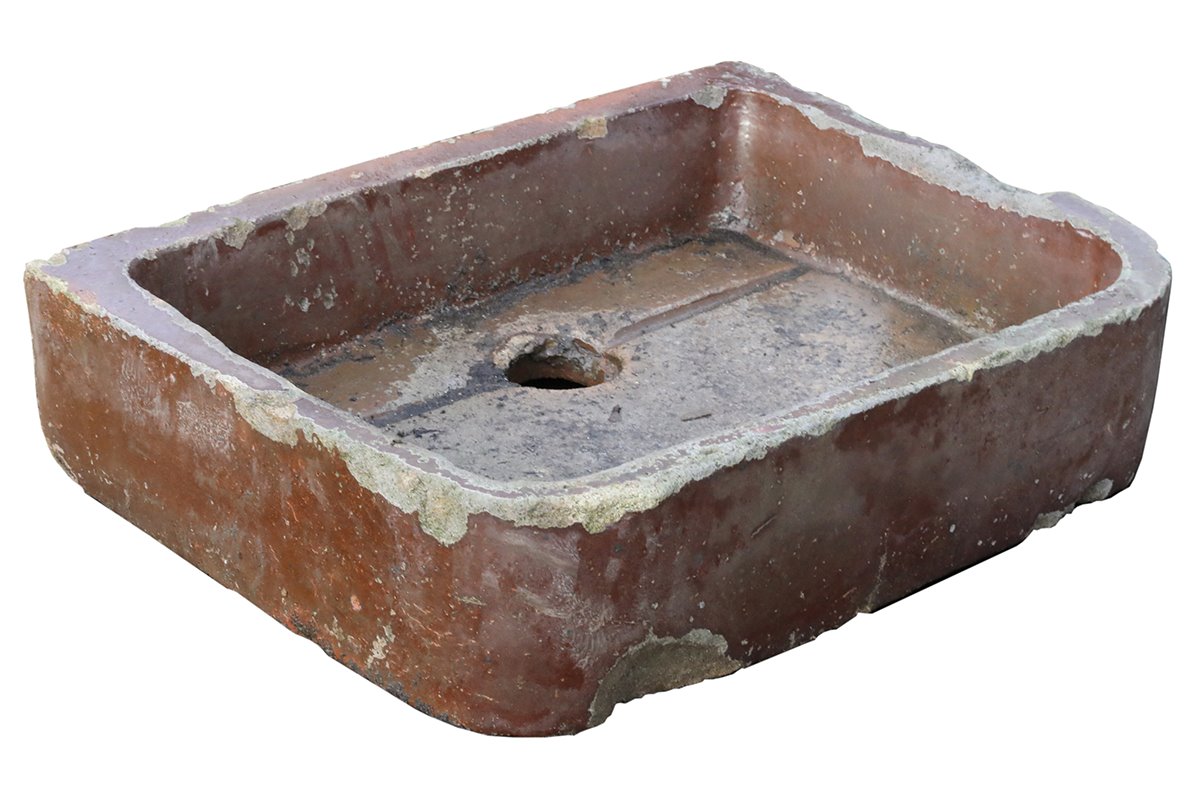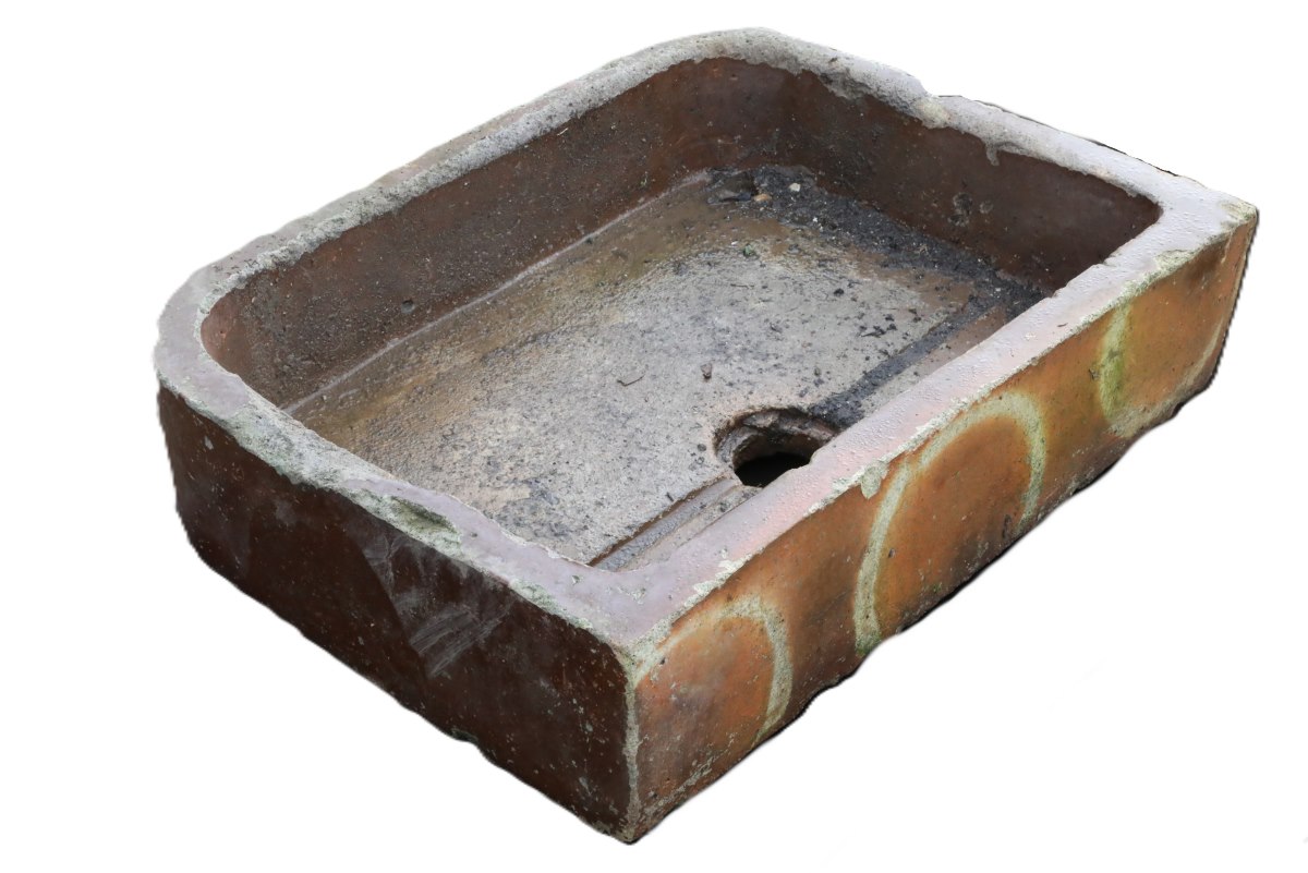 Nevertheless, the body remains structurally sound and capable of performing its original working function. For instance, it could serve reliably as a boot room sink handling muddy footwear and tools. However, the visible damage suggests alternative uses where a pristine condition is not required. In gardens, the Victorian salt glazed sink works beautifully as a greenhouse sink or water feature component. With a generously sized drain hole, it also suits conversion into a practical herb planter.