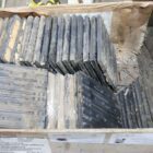 These reclaimed black Victorian style embossed tiles capture the artistry and depth of traditional British ceramics. These tiles have a petrol glaze that looks particularly striking in kitchens and bathrooms where spotlights, or natural sunlight, highlights the surface texture and reveals the iridescent colours. This small batch of 35 tiles is ideal for a feature wall or splashback.