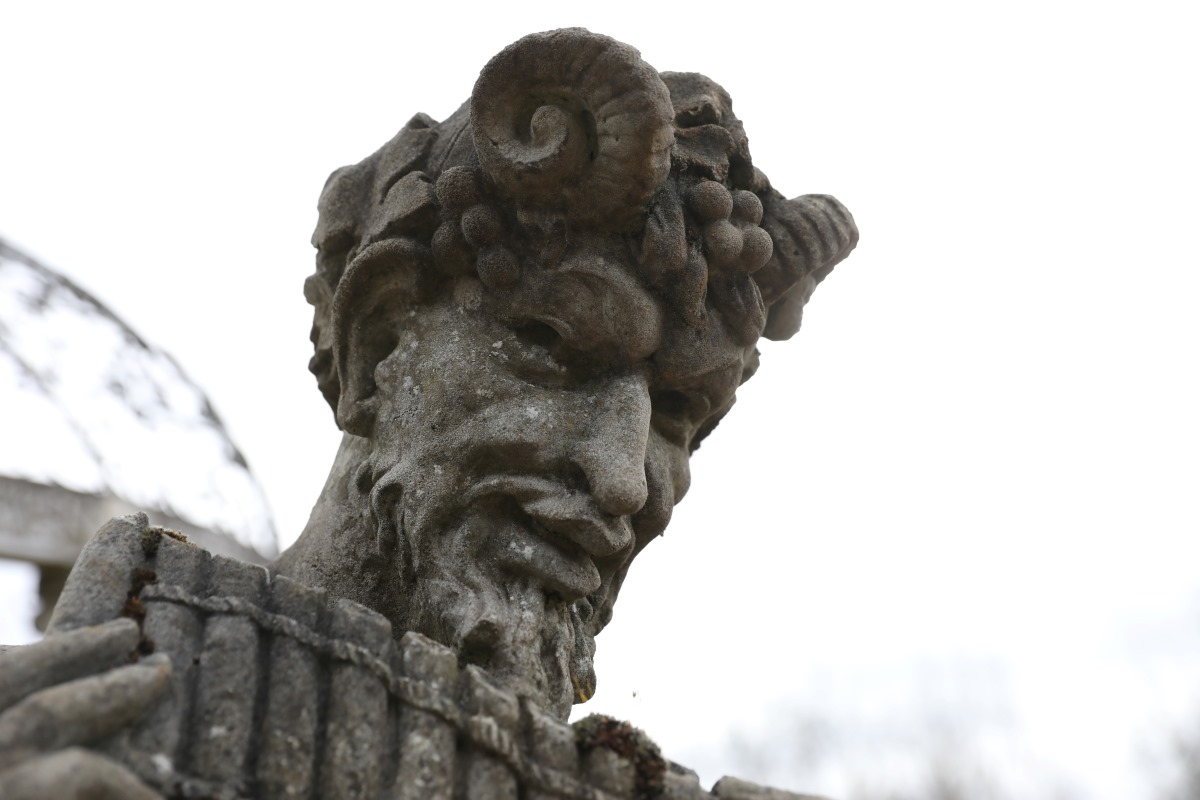 Weathered Statue of Pan and Pipes